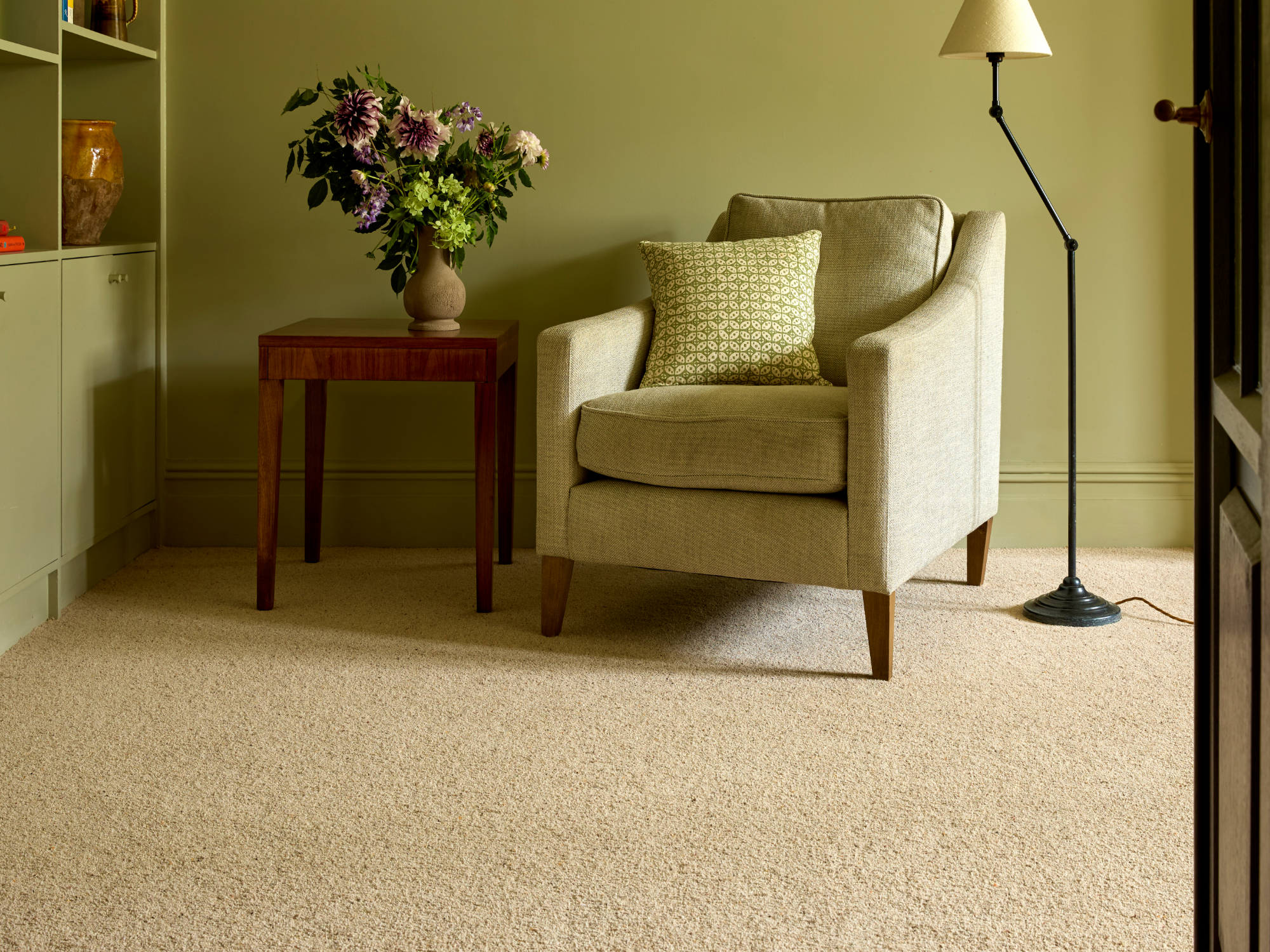 Wool is a naturally hygroscopic fibre — meaning it absorbs and releases moisture as the humidity in a room changes. In practical terms, this means wool carpet actively helps regulate the atmosphere of a room, making it feel more comfortable in both warm and cold weather. Synthetic fibres don't do this. They sit in the room. Wool works with it.