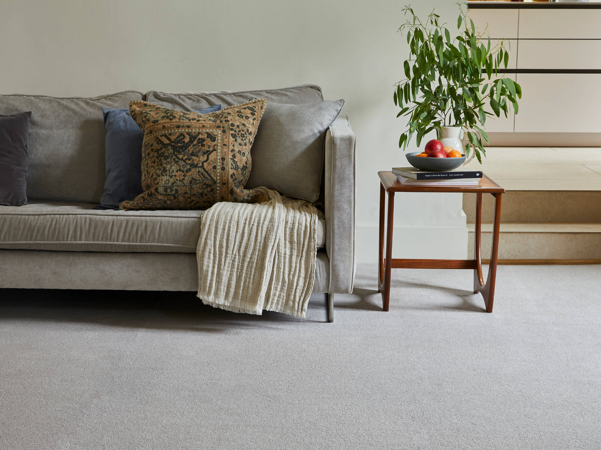 The natural crimp in wool fibre traps air within the pile, creating a layer of natural insulation that genuinely reduces heat loss through the floor. In a room with wool carpet, the heating does less work — and the difference is noticeable. That same structure also absorbs sound in a way that gives a room a calm, settled quality. Less echo, less noise transfer, more of the quiet that makes a home feel like a proper retreat.